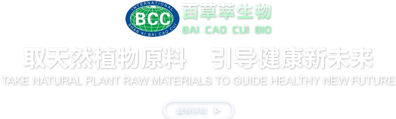 陜西百草萃生物科技有限公司,位于陜西省咸陽(yáng)市秦都區(qū)濱河西路1號(hào)大秦御港城,公司成立于1996年,主要從事天然植物種植、研發(fā)、生產(chǎn)、加工、銷(xiāo)售為一體的高科技企業(yè)。主營(yíng)醫(yī)藥原料、保健品原料、化妝品原料,精細(xì)化工原料。公司致力于人類(lèi)健康保護(hù)事業(yè)“ 以科技為動(dòng)力,以質(zhì)量求生存” 的本質(zhì),依托陜西高新科技技術(shù)人才和科研優(yōu)勢(shì),已形成多學(xué)科、全方位、高層次的技術(shù)管理精英團(tuán)隊(duì)。充分利用秦巴山區(qū)的天然藥物資源,歷經(jīng)多年發(fā)展為打造百草萃生物品牌奠定了基礎(chǔ)。